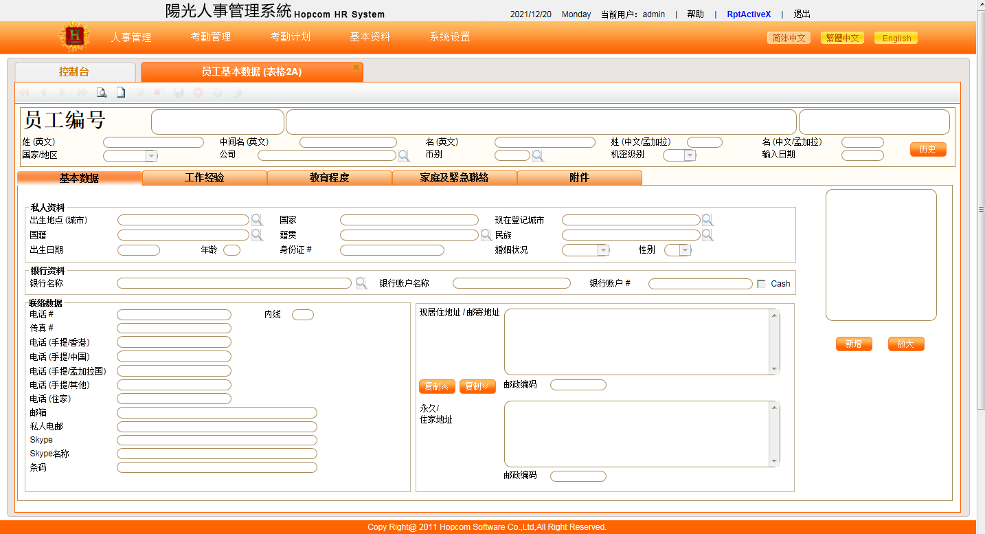 陽光人事管理系統是一套用於方便企業內部人事管理的系統,為企業的管理運作提供綜合、全面、快速、科學的決策支持,通過企業各部門數據信息共享,獲取企業管理運作各類綜合信息,融合最新企業管理思想,提供嶄新的業務運作國力模式,實現企業管理數字化、現代化的企業內部人事管理。