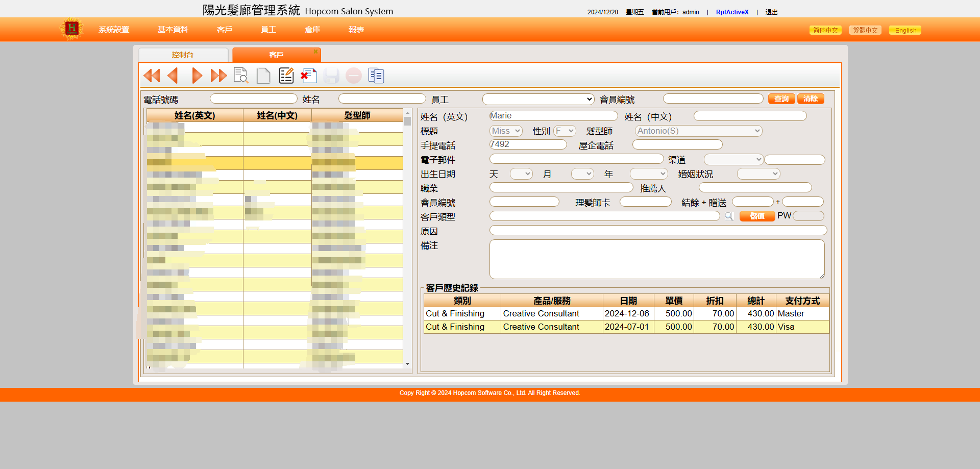 阳光发廊管理系统是一套专门为发廊行业设计的综合管理系统,旨在提升发廊的运营效率,优化内部管理。系统为发廊的日常管理提供全面、快速、科学的决策支持。通过发廊各部门的数据共享,实时获取大众经营信息,帮助廊坊老板与管理者做出更精准的经营决策。 该系统实现了现代发廊管理理念,集成了预订管理、员工排班、客户服务记录、销售统计、库存管理等功能的融合,不仅提高了业务操作的效率,还通过数字化手段实现了管理流程的现代化,助力发廊业务实现更高效的运营模式。 通过阳光发廊管理系统,发廊可以更好地管理员工与客户,提升客户满意度,增加销售收入,实现发廊经营的数字化、定制化和现代化。